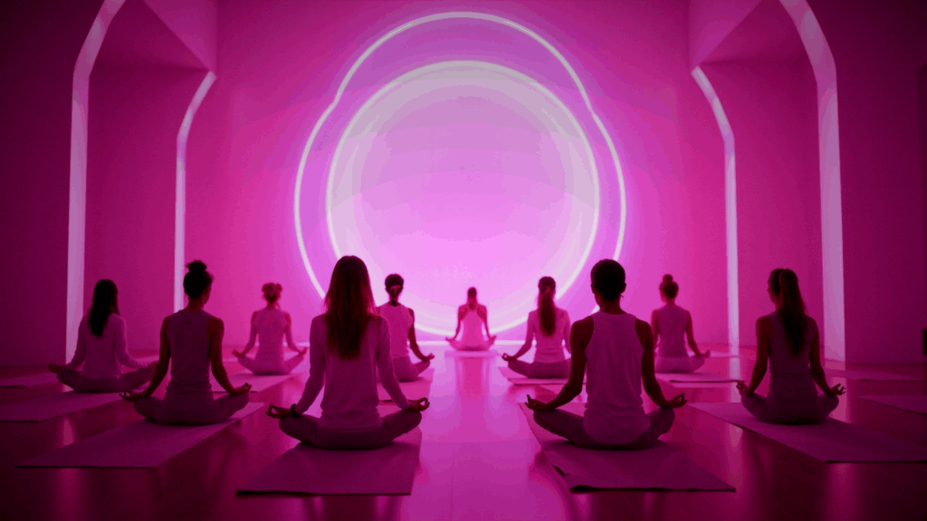 In der Yoga Sphere verschmelzen Atem, Bewegung, Musik und Licht zu einem einzigartigen Erlebnis, das alle Sinne vereint. Speziell komponierte Musik und sanfte Lichtfrequenzen begleiten dich in den FlowZustand.Ausgewählte Aromen begleiten dich auf dem Weg zu mehr Fokus, Entspannung und tiefer Resonanz – und schenken dir neue Kraft für den Alltag.